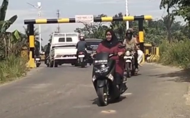 Terlihat, pengendara melintasi jembatan Ujung Batu untuk mengantarkan barang dan ke pasar untuk berbelanja barang kebutuhan. Namun, terlihat portal pembatas jembatan setinggi 2.3 Meter dan dibuka pada 5 November 2025 mendatang.