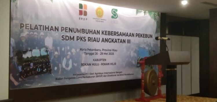 Pelatihan yang mengambil materi ‘Penumbuhan Kebersamaan Pekebun SDM PKS RIAU ‘, berlangsung dari tanggal 26 sd 29 Mei 2025 di Alamanda meeting room hotel Grand central kota Pekanbaru