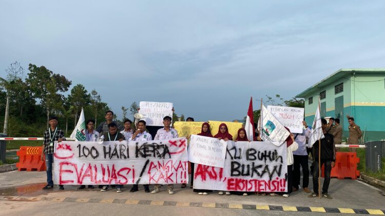 Pekanbaru, Beninginfo.com, Puluhan Mahasiswa dari beberapa kampus besar Kota Pekanbaru, Pemuda, hingga kader komisariat se-Kota Pekanbaru dan Pengurus Daerah Kesatuan Aksi Mahasiswa Muslim Indonesia Pekanbaru (PD KAMMI Pekanbaru) menggelar Aksi Damai dalam rangka menagih janji ” 100 Hari Kerja Pemerintahan Kota Pekanbaru, Mau Dibawa Kemana Pekanbaru?” di Kantor Walikota Pekanbaru Tenayan Raya., Rabu, (4-6-2025)