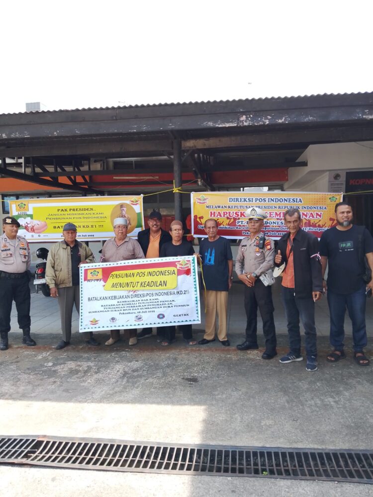 Pekanbaru, Beninginfo.com – Belasan orang yang tergabung dalam Persatuan pensiunan Pos Indonesia wilayah Riau , Selasa 8 Juli 2025 mengelar aksi damai di halaman Kantor pos cabang Pekanbaru .