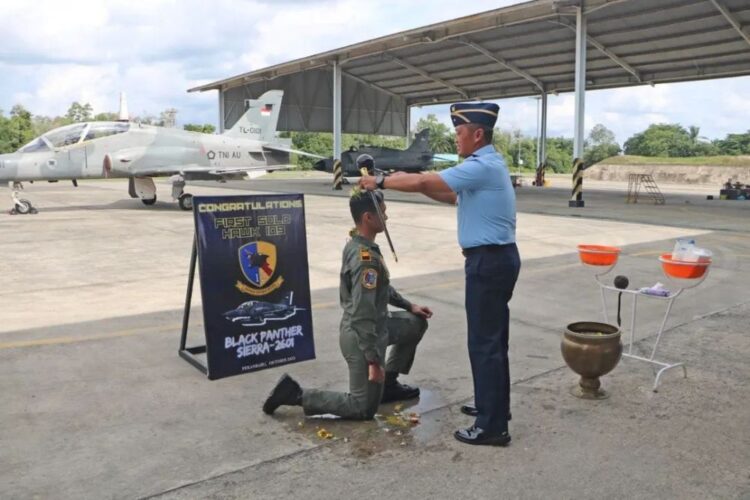 Tradisi penyiraman air kembang oleh Komandan Lanud Rsn Marsma TNI Abdul Haris menjadi simbol penghormatan atas keberanian dan keberhasilan sang penerbang muda. Prosesi berlangsung di Shelter Charlie Lanud Rsn, Selasa (21/10/2025), dan disaksikan jajaran perwira matra udara.