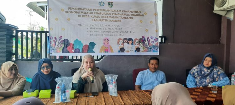 Pekanbaru, Beninginfo.com — Universitas Islam Negeri Sultan Syarif Kasim (UIN Suska) Riau kembali menunjukkan komitmennya dalam pengabdian kepada masyarakat melalui kegiatan pelatihan kewirausahaan bagi kaum perempuan. Kegiatan ini bertujuan meningkatkan kemampuan ekonomi rumah tangga di tengah tantangan perekonomian yang terus berubah. Hadir sejumlah narasumber dari kampus, Identiti S.E , M.Ak , Ak , CA ( Ketua ), Harkaneri S.E, MSA , Ak, CA (Anggota), Dr. Umi Rachmah Damayanti S.E.,M.M ( Anggota, Dr. Ade Ria Nirmala S.E, M.M (Anggota)
