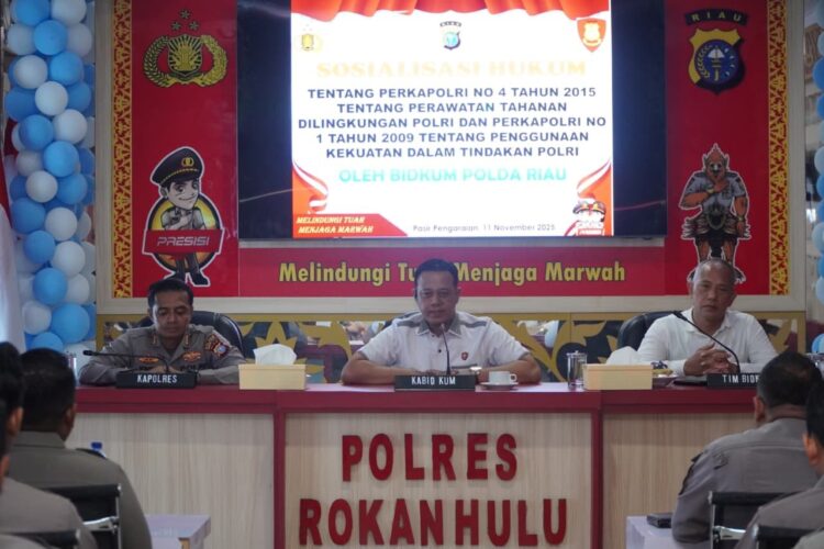 Pasir Pangaraian,Beninginfo.com – Dalam rangka meningkatkan profesionalisme dan pemahaman hukum di kalangan personel Polri, Bidang Hukum (Bidkum) Polda Riau melaksanakan kegiatan Sosialisasi Hukum di Aula Rupatama Polres Rokan Hulu, Selasa (11/11/2025) sekitar pukul 09.00 WIB.