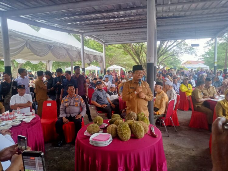 Kegiatan yang berlangsung meriah itu dihadiri langsung oleh Wakil Bupati Rokan Hulu, H. Syafaruddin Poti, S.H., M.M., bersama jajaran pejabat pemerintah daerah. Sebelum acara makan bersama dimulai, Wakil Bupati menyampaikan sambutan yang membangkitkan semangat para petani durian yang menjadi tumpuan produksi buah unggulan daerah tersebut.