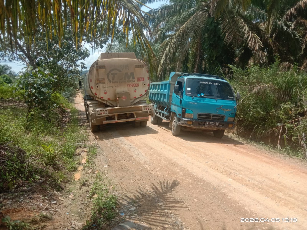 Ahad (5/4/26), salah seorang warga inisial A (36) mengatakan bahwa mobil industri angkutan minyak mentah bermerek PT Tata Bumi Mulai (TBM) yang merupakan mitra kerja PT Aserra Petrolindo Gemilang Westkampar Indonesia melintas di jalan desa tersebut.