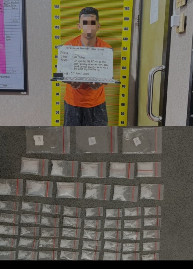 Dalam penggerebekan tersebut, petugas mengamankan seorang pria bernama Rahmad Efendi Hasibuan (30), seorang wiraswasta yang berdomisili di Kabupaten Simalungun. Dari hasil penggeledahan, polisi menemukan sebanyak 86 bungkus sabu yang dikemas dalam plastik klip transparan dengan berat bruto sekitar 26,7 gram.